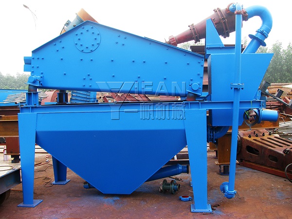 工作原理:將砂水混合物輸送至旋流器,離心分級濃縮的細(xì)砂經(jīng)沉砂嘴提供給振動(dòng)篩,經(jīng)振動(dòng)篩脫水后,細(xì)砂與水有效分離,少量細(xì)砂、泥等經(jīng)返料箱再回到清洗槽,清洗槽液面過高時(shí),經(jīng)出料口排出.直線振動(dòng)篩回收物料重量濃度為70%-85%。調(diào)節(jié)細(xì)度模數(shù)可通過改變泵轉(zhuǎn)速、改變砂漿濃度、調(diào)節(jié)溢流水量、更換出砂嘴來實(shí)現(xiàn)。從而完成清洗、脫水和分級三種功能。