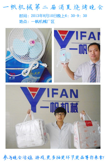 鄭州2013年的夏天,一直持續(xù)高溫天氣。鄭州一帆機(jī)械設(shè)備有限公司為了給員工放松心情,抗擊這炎炎酷署,特地在2013年8月10日晚上舉行消夏燒烤晚會(huì)。